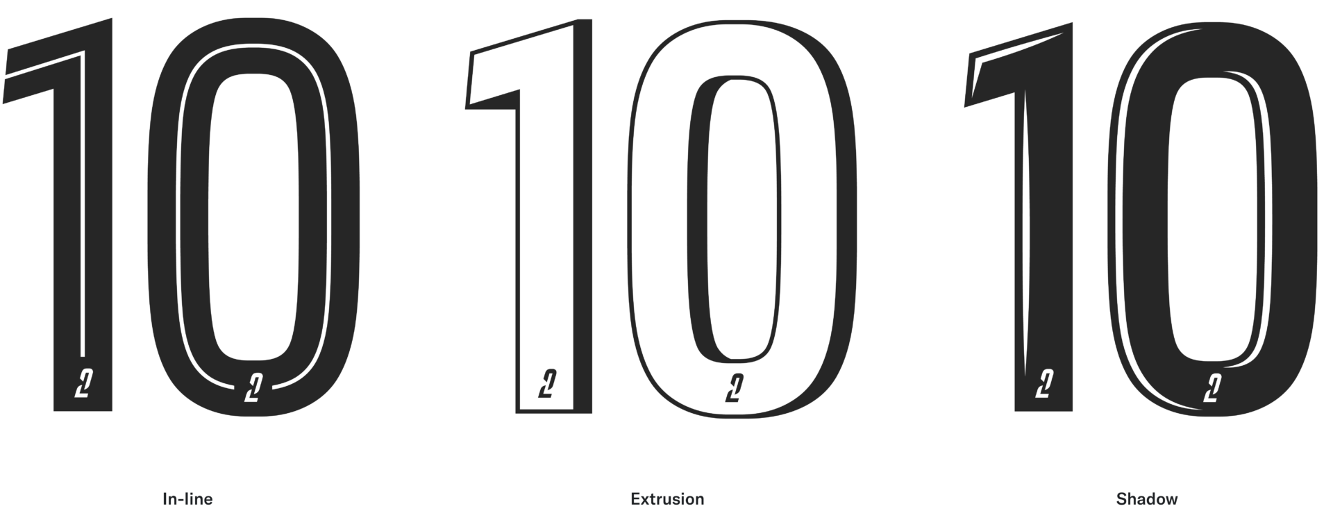 Pour les chiffres, trois types de personnalisation sont mis à disposition des clubs pour enrichir leurs maillots : Liseré n°1 : In-line Liseré n°2 : Extrusion Liseré n°3 : Shadow Chaque club est libre d’utiliser le liseré des chiffres de son choix pour chaque jeu de maillot (ex. In-line pour le maillot home, Extrusion pour le maillot away, Shadow pour le maillot third). Toutefois, le liseré Shadow sera privilégié dans le cas où les quantités commandées seraient trop faibles pour envisager l’usage du liseré Extrusion ou In-line.