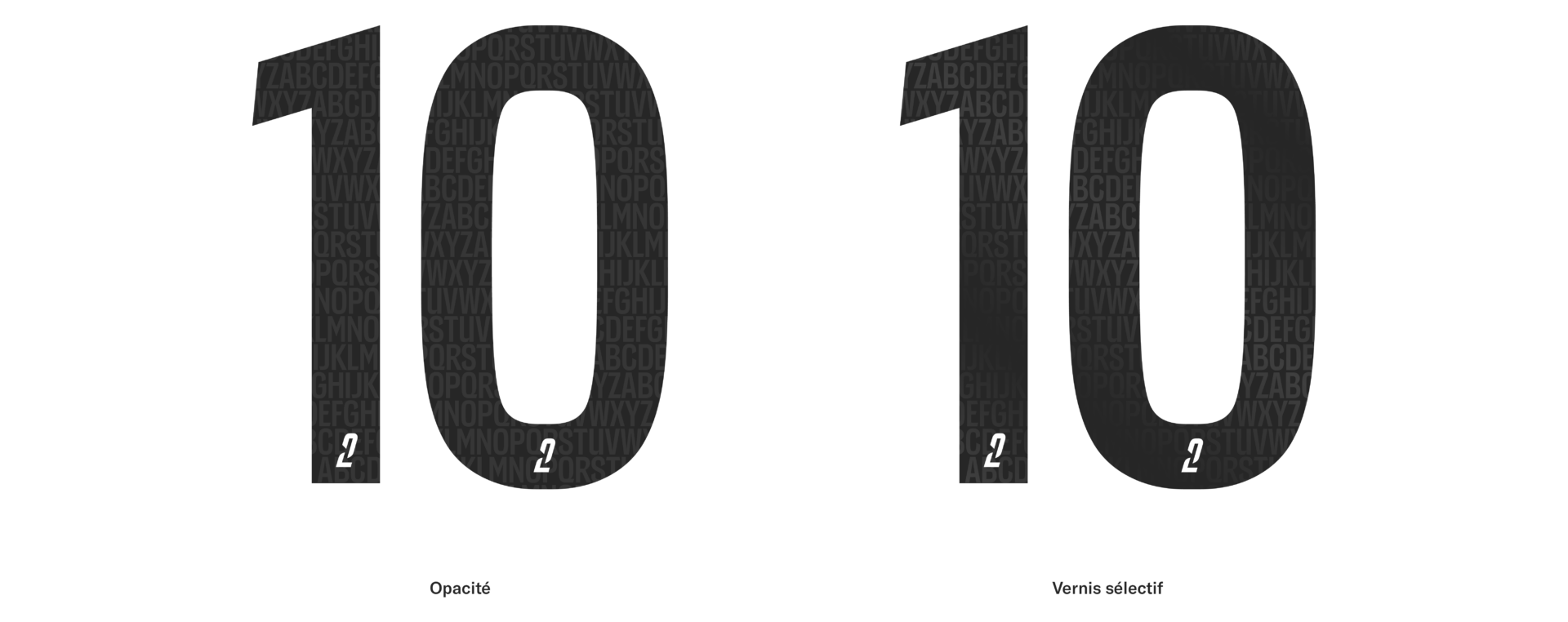 Vernis sélectif: Cette option a recours à un procédé de fabrication particulier. Le motif doit être apposé via un vernis sélectif. Celui-ci sera visible sous différents angles grâce à la lumière.