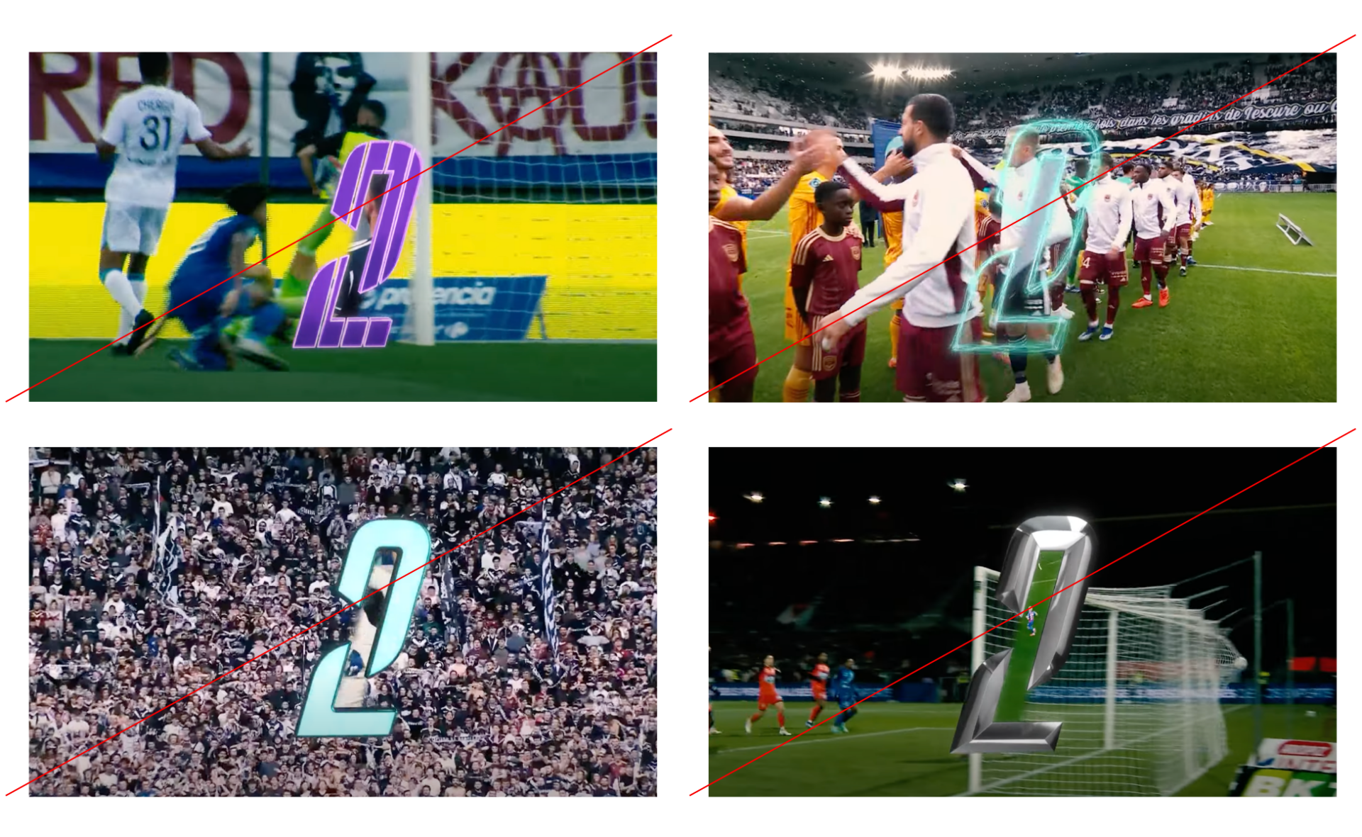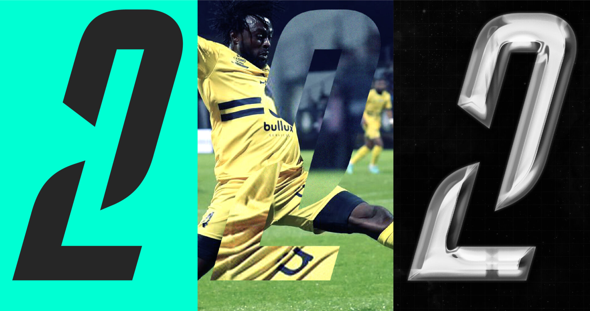 Ce jeu typographique entre un “L” et un “2” (abréviation de “Ligue 2”) vient capitaliser sur le nom de la compétition et lui apporter de la profondeur. Le symbole ne se rapporte pas uniquement au football mais aussi au sport et à la performance.