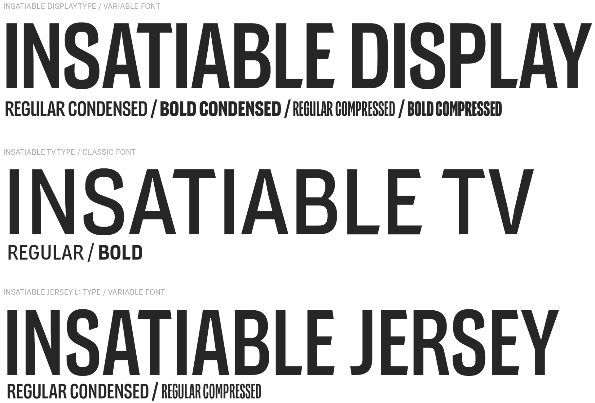 Les typographies Insatiable Display et Insatiable Jersey sont